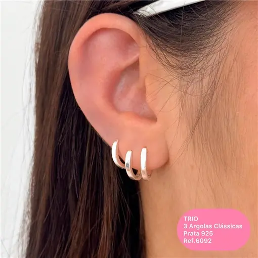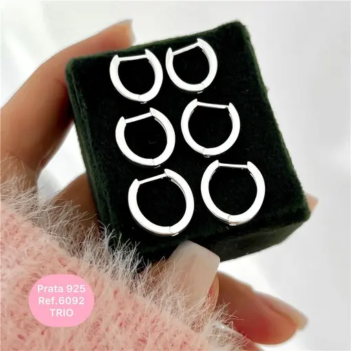Cy6092 - 3 Brincos Trio Argola Click Oval Lisa - 11Mm, 12Mm E 13